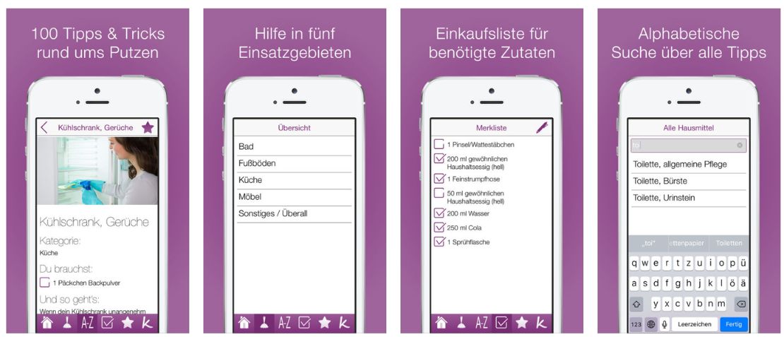 Putzen ist ja leider notwendig, bringt aber den Meisten kaum Spaß und wird als lästige Pflicht wahrgenommen. Etwas besser geht es, wenn man richtig putzt – und dabei kann die App 100 Tipps zum Putzen sicher helfen.